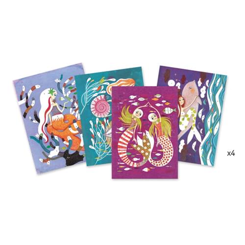 Κολλήστε την χρυσόσκονη επάνω στις γοργόνες της εταιρίας Djeco και ένας πολύχρωμος κόσμος θα εμφανιστεί μπροστά σας! Κάθε εικόνα έχει αυτοκόλλητα με νούμερα που αντιστοιχούν σε ένα χρώμα χρυσόσκονης. Ξεκολλήστε το αυτοκόλλητο και ρίξτε την χρυσόσκονη, τινάξτε την εικόνα μέσα στο κουτί και η κατασκευή σας είναι έτοιμη!