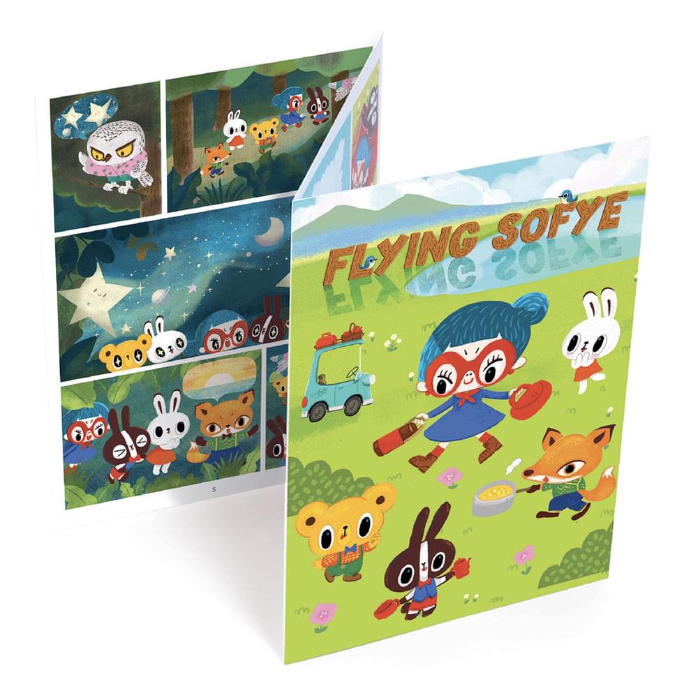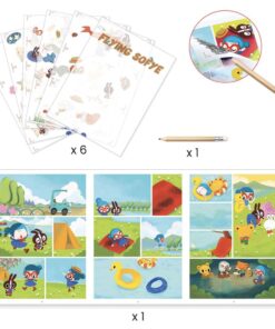 Φτιάξτε την ιστορία της ιπτάμενης Σόφη, μεταφέροντας τις φιγούρες που θα βρείτε στη συσκευασία της εταιρείας Djeco.