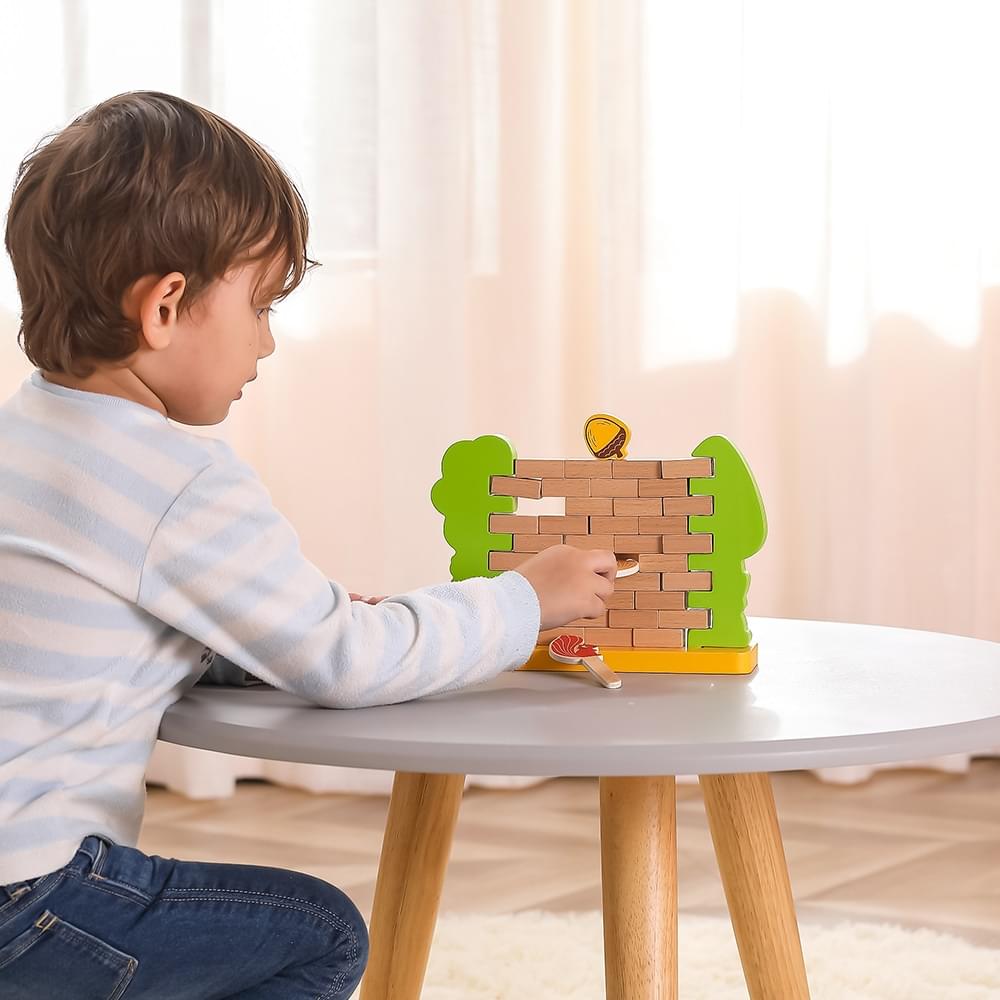 Περάστε τον χρόνο σας δημιουργικά με το ξύλινο επιτραπέζιο παιχνίδι ‘Ο τοίχος’ από τη σειρά PolarB της εταιρείας Viga. Χτίστε τον τοίχο, τοποθετήστε επάνω του το βελανίδι και στη συνέχεια ξεκινήστε να αφαιρείτε τουβλάκια, χωρίς όμως να πέσει το βελανίδι. Το παιχνίδι συμβάλλει στην εξάσκηση της λεπτής κινητικότητας, του συντονισμού ματιού- χεριού και της αντίληψης.
