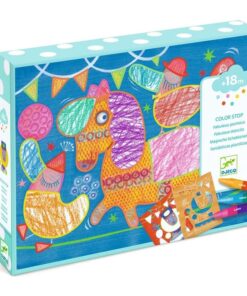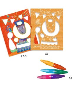 Το σετ περιλαμβάνει 12 σελίδες με σχέδια για να χρωματίσουν (28 x 22 εκ.), 3 στένσιλ, 3 κηρομπογιές με 6 διαφορετικά χρώματα και εικονογραφημένες οδηγίες μέσα σε ένα όμορφο κουτί που χρησιμοποιείται κατά τη διάρκεια του παιχνιδιού.