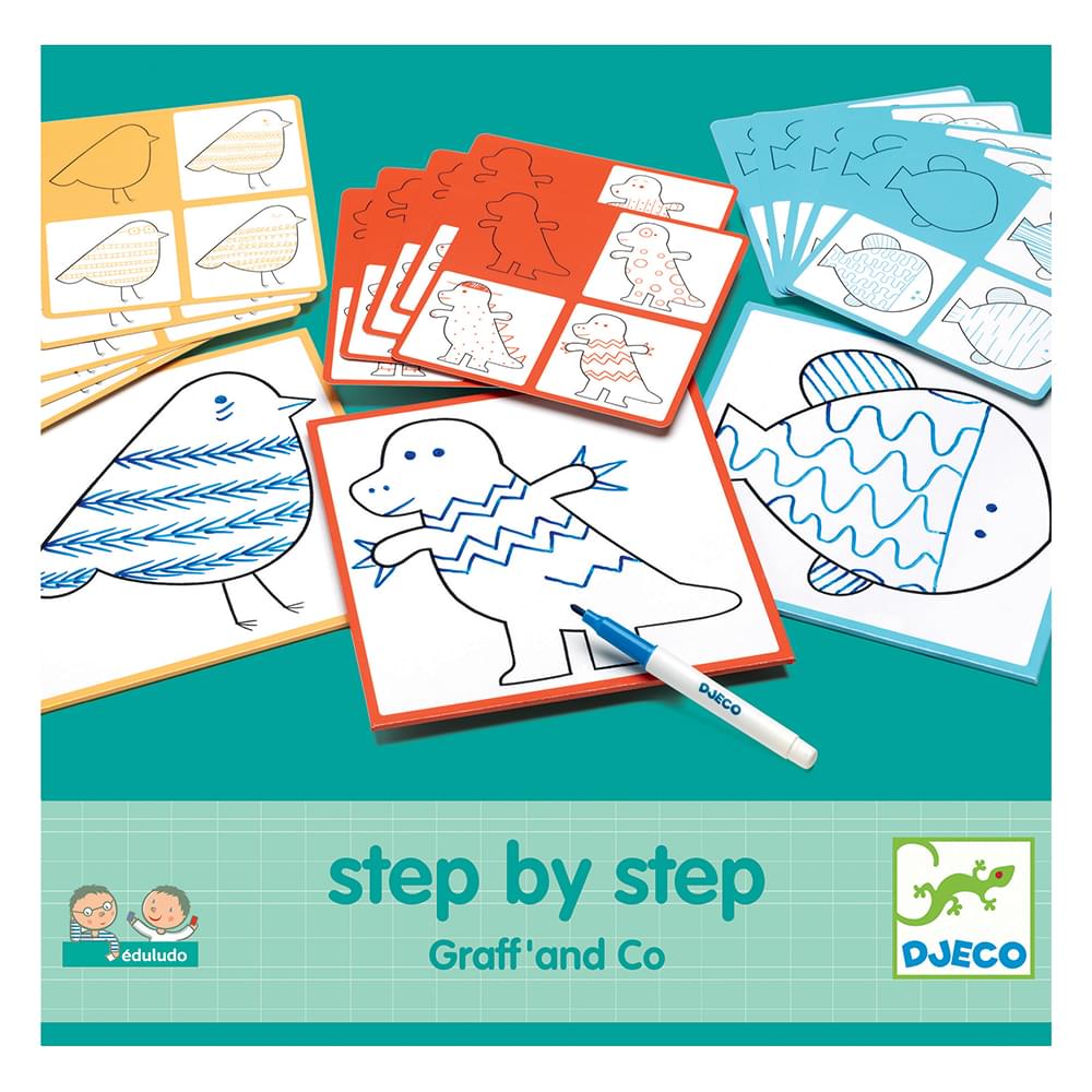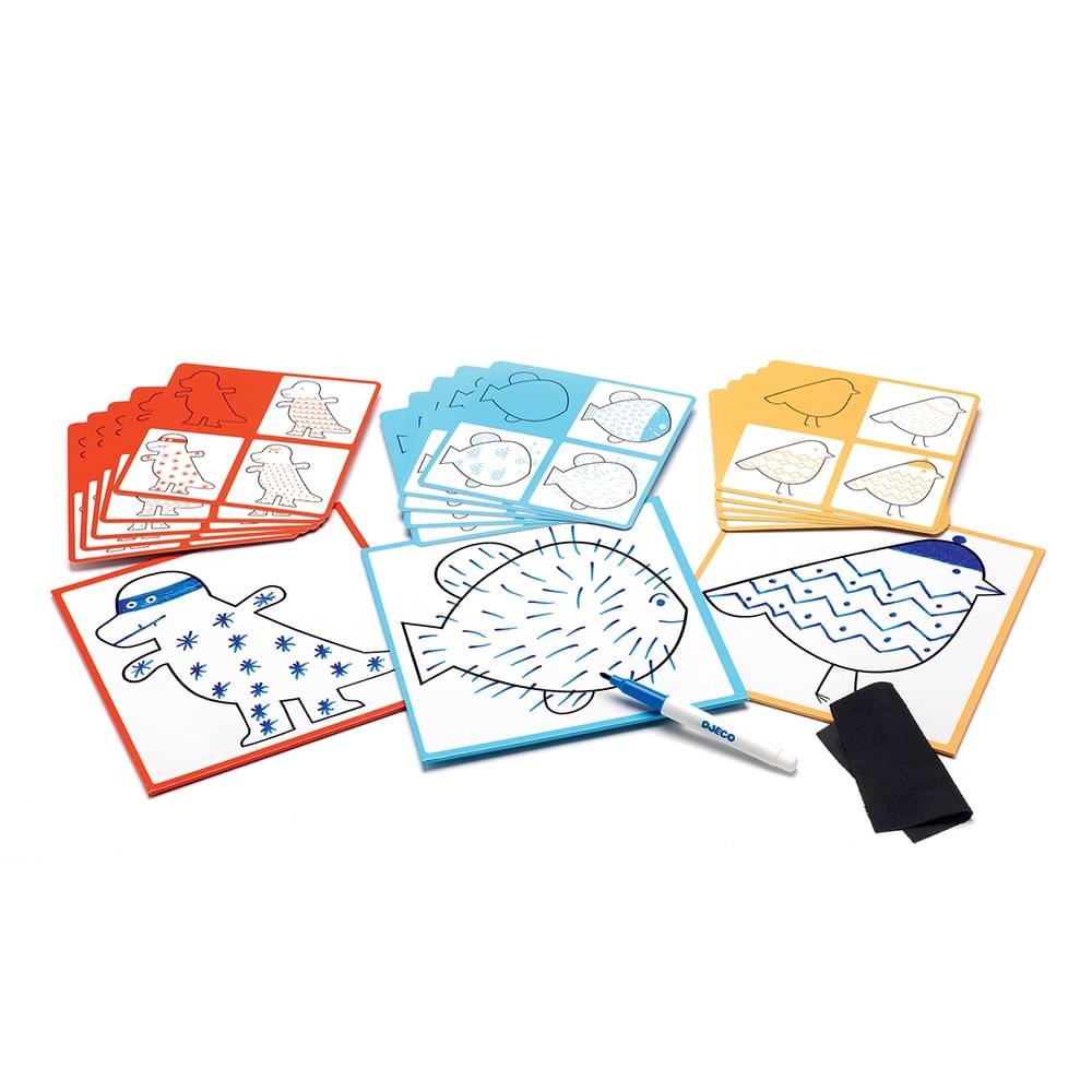 Σχεδιάστε τα δικά σας ζωάκια, με το σετ ζωγραφικής της εταιρίας Djeco! Καθοδηγεί βήμα-βήμα τις μικρές μας ζωγράφους πώς μπορούν σε τρία στάδια να μάθουν να σχεδιάζουν! Το σετ περιλαμβάνει 12 κάρτες διπλής όψης, 1 πίνακα ζωγραφικής, ένα μαρκαδόρο και το ειδικό πανάκι για να σβήνετε τον πίνακα.