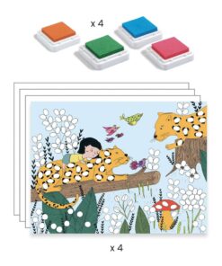 Το σετ περιλαμβάνει 4 κάρτες ζωγραφικής (28 x 21 εκ.), 4 μελάνια διαφορετικών χρωμάτων και εικονογραφημένες οδηγίες.
