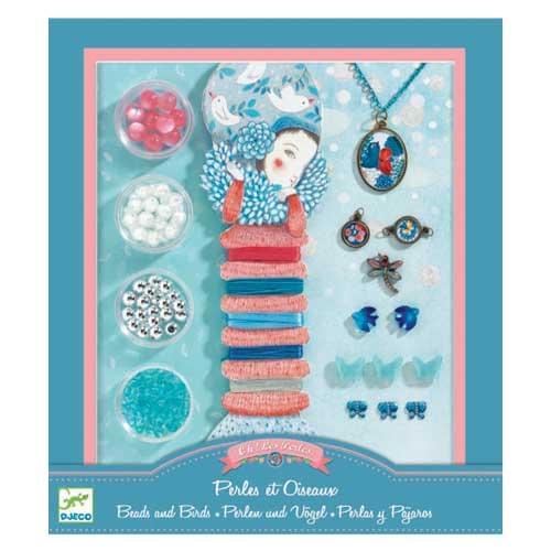 Πέρλες και πουλάκια συγκεντρωμένα σε όμορφη συσκευασία για να κατασκευάσεις κοσμήματα σύμφωνα με το στυλ σου! Μία πρόταση από την γαλλική εταιρία Djeco όπου μπορείτε να φτιάξετε κολιέ, μενταγιόν, βραχιόλια. Περιλαμβάνονται κορδέλες, αλυσίδες, χάντρες και πέρλες – όλα τα απαραίτητα για ένα ολοκληρωμένο σετ κοσμημάτων.
