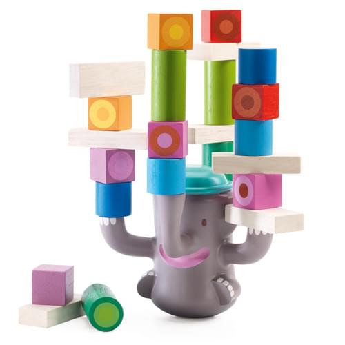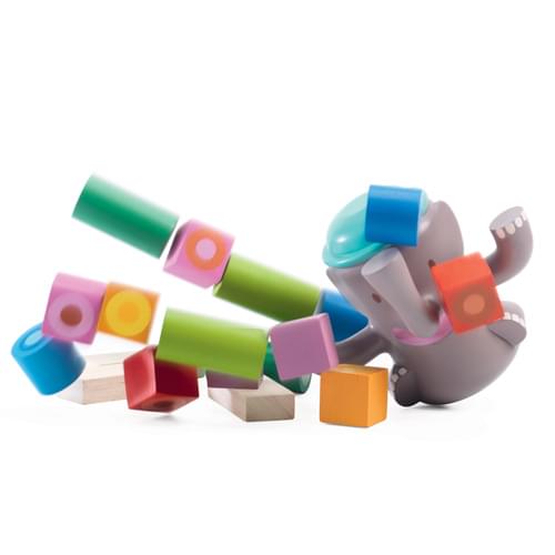 Παιχνίδι ισορροπίας για τους μικρούς μας φίλους από την εταιρεία Djeco. Τα παιδιά πρέπει να έχουν σταθερό χέρι ώστε να στοιβάξουν τα ξύλινα, πολύχρωμα τουβλάκια στα πόδια και την προβοσκίδα του ελέφαντα. Ποιό παιδί θα καταφέρει να τα τοποθετήσει και τα 20 τουβλάκια που περιλαμβάνονται χωρίς να αναποδογυρίσει ο ελέφαντας;