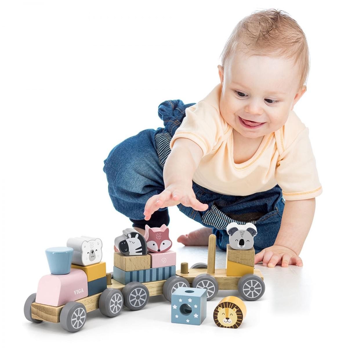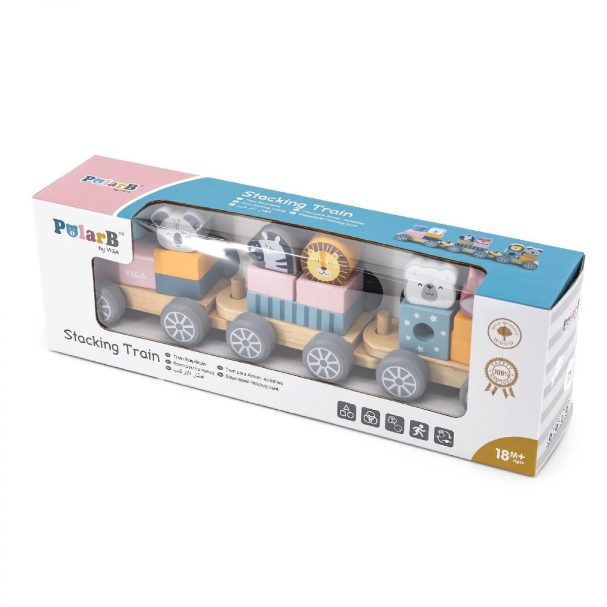 Το τρενάκι της σειράς polarb από την εταιρεία Viga θα βοηθήσει τους μικρούς μας φίλους να αναπτύξουν τη δεξιότητα συντονισμού χεριού – ματιού. Διαλέξτε πόσα βαγόνια θέλετε να έχει το τρενάκι σας και γεμίστε τις καβίλιες με τουβλάκια και ζωάκια. Μπορείτε να χρησιμοποιήσετε τα 14 τουβλάκια και ξεχωριστά, δημιουργώντας μοναδικές κατασκευές. Είναι κατασκευασμένο από μασιφ ξύλο οξιάς με μη τοξικά χρώματα και λούστρα με βάση το νερό. Κατάλληλο για παιδιά ηλικίας 18 μηνών και άνω.