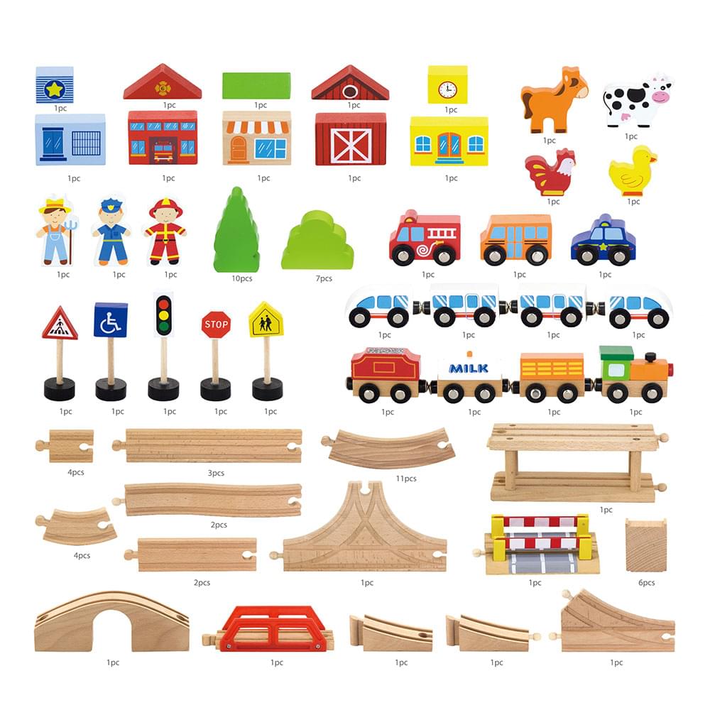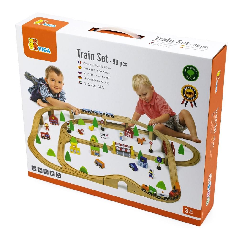 Το ξύλινο τρενάκι της εταιρείας Viga μόλις έφτασε στο σταθμό! Τα παιδιά έχουν την δυνατότητα να κατασκευάσουν διαδρομές με τα πλακίδια και να δημιουργήσουν μια πόλη οπού θα μπορέσουν να ξεκινήσουν το παιχνίδι των ρόλων. Το σετ περιλαμβάνει 90 τεμάχια και είναι κατασκευασμένο από μασιφ ξύλο οξιάς με χρώματα και λούστρα που έχουν βάση το νερό.
