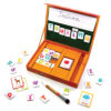 Περιλαμβάνεται 1 ξύλινη βάση (2 τεμαχίων), 24 γράμματα κατασκευασμένα από μασιφ ξύλο οξιάς και 50 κάρτες πρώτης γραφής.