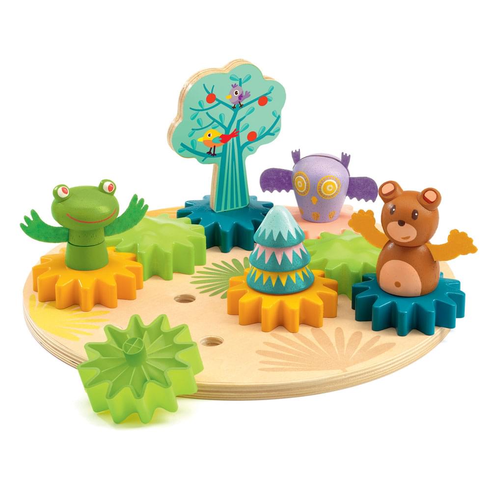 Παιχνίδι ταξινόμησης με γρανάζια από την εταιρεία Djeco. Τα παιδιά επιλέγουν ένα-ένα τα κομμάτια και τα τοποθετούν στην ξύλινη βάση ώστε να δώσουν ζωή στο δάσος με τα ζώα και τα δέντρα. Τα γρανάζια κάνουν ακόμα πιο διασκεδαστικό το παιχνίδι καθώς δίνουν τη δυνατότητα περιστροφής ολόκληρης της κατασκευής. Ένα παζλ που αναπτύσσει την αντίληψη, τον συντονισμό των κινήσεων και την λεπτή κινητικότητα.