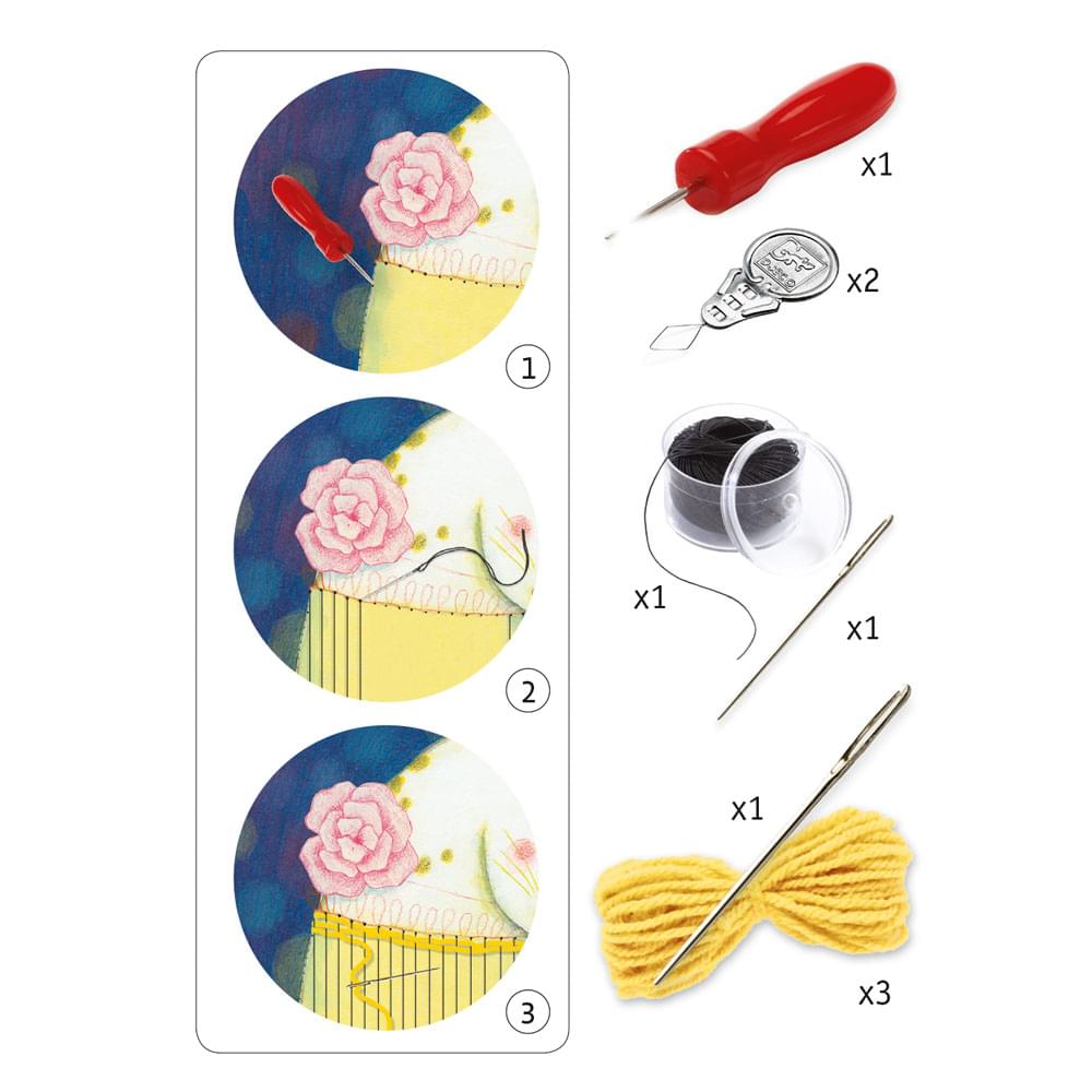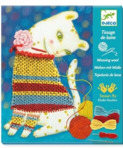 Εύκολη εκμάθηση τεχνικής ύφανσης από την εταιρεία Djeco. Δημιουργήστε μια υπέροχη εικόνα χρησιμοποιώντας νήμα από μαλλί. Τα παιδιά περνούν το νήμα από τις τρύπες στην εικονογραφημένη σανίδα. Μόλις ο «αργαλειός» είναι έτοιμος μπορούν να αρχίσουν να πλέκουν την εικόνα για να την ολοκληρώσουν.