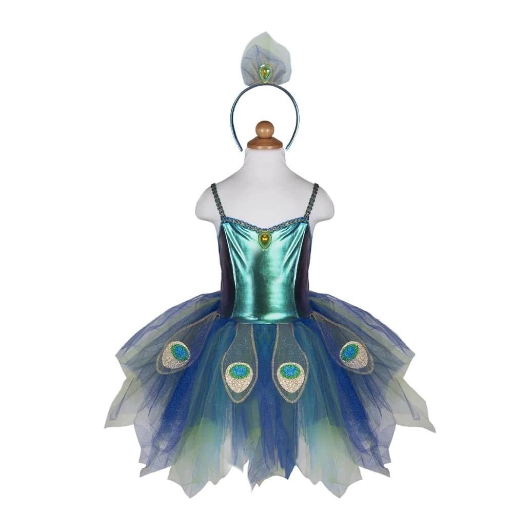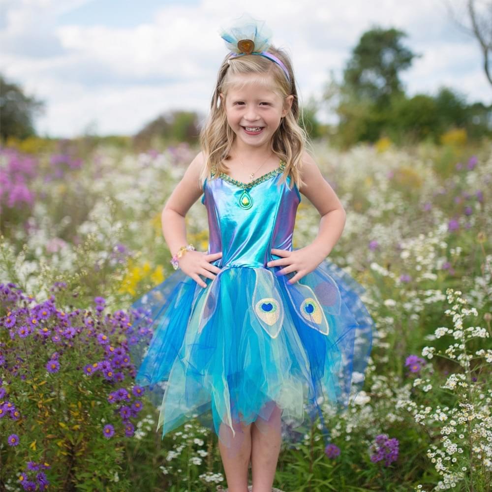 Πανέμορφη στολή παγώνι με στέκα της εταιρίας Great Pretenders. Η στολή είναι εξαιρετικής ποιότητας, αποτελείται από υφάσματα διαφόρων υφών, όπως τούλι, μεταλλιζέ και χρυσόσκονες, που προσδίδουν ένα εντυπωσιακό αποτέλεσμα και συνοδεύεται από μια τρισδιάστατη στέκα με που συμπληρώνει όμορφα τη στολή. Είναι κατάλληλη για τις απόκριες, αλλά και για συμβολικό παιχνίδι για όλη τη διάρκεια του χρόνου. Μέσα από το συμβολικό παιχνίδι και τα παιχνίδια ρόλων τα παιδιά μαθαίνουν να εκφράζονται, αναπτύσσουν το λόγο τους και απελευθερώνουν τη φαντασία τους!