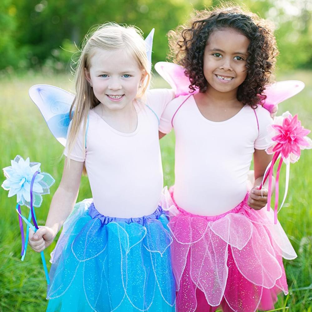 Η μικρή νεράϊδα βγήκε από το παραμύθι και ήρθε να γοητεύσει τους πάντες! Η πανέμορφη φούστα από την εταιρεία Great Pretenders με πολλές σειρές ροζ τούλι σε ροζ χρώμα, τα ασορτί εντυπωσιακά φτερά και το νεραϊδοραβδάκι σας μεταμορφώνουν αμέσως στην πιο αγαπημένη φιγούρα των παιδιών.