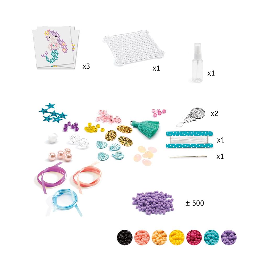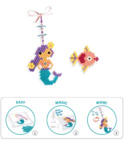 Δημιουργήστε κρεμαστά διακοσμητικά με μπίλιες, μέσω μιας ιδιαίτερης τεχνοτροπίας, για να στολίσετε ό,τι εσείς φαντάζεστε! Ακολουθώντας το σχέδιο που τους παρέχεται, τα παιδιά τοποθετούν πολύχρωμες χάντρες πάνω σε ένα ειδικό ταμπλό και στη συνέχεια τις ψεκάζουν με νερό. Ως δια μαγείας, οι μπίλιες κολλάν μεταξύ τους και το μόνο που μένει να κάνουμε είναι να στολίσουμε τα διακοσμητικά μας με χάντρες και κορδέλες! Μια πρωτότυπη ενασχόληση της εταιρίας Djeco, που αναπτύσσει τη δημιουργικότητα των παιδιών, ενώ τα βοηθά να συγκεντρώνονται και να εξασκούν τη λεπτή κινητικότητά τους.