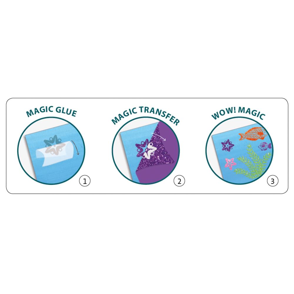 Ένα δημιουργικό κολλάζ με θέμα τους δεινόσαυρους. Διακοσμήστε τις κάρτες που παρέχονται στο πακέτο ή ακόμη και τα σχολικά σας βιβλία ή τετράδια με αυτό το μοναδικό σετ. Κολλήστε πρώτα το μαγικό αυτοκόλλητο και στη συνέχεια εφαρμόστε επάνω του το διακοσμητικό μεταλλικό φύλλο και η κατασκευή σας είναι έτοιμη! Μια πρωτότυπη χειροτεχνία-κατασκευή για τους μικρούς μας φίλους!