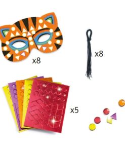 Φορέστε τις φανταχτερές μάσκες και μεταμορφωθείτε σε ζώα της ζούγκλας! Κατασκευάστε μάσκες και στολίστε τις με γυαλιστερά μεταλλικά αυτοκόλλητα σαν να φτιάχνατε μωσαϊκό. Μπορείτε να φτιάξετε 8 διαφορετικές μάσκες ζωάκια μεγέθους 16 x 12 εκατοστών για ατελείωτο παιχνίδι ρόλων. Η σειρά DO IT YOURSELF της εταιρίας Djeco προσφέρει την ευκαιρία στα παιδιά να εξασκήσουν όλα τους τα ταλέντα, δημιουργώντας μοναδικές κατασκευές που ταυτόχρονα αναπτύσσουν δεξιότητες όπως η υπομονή, η δημιουργικότητα και η λεπτή κινητικότητα.