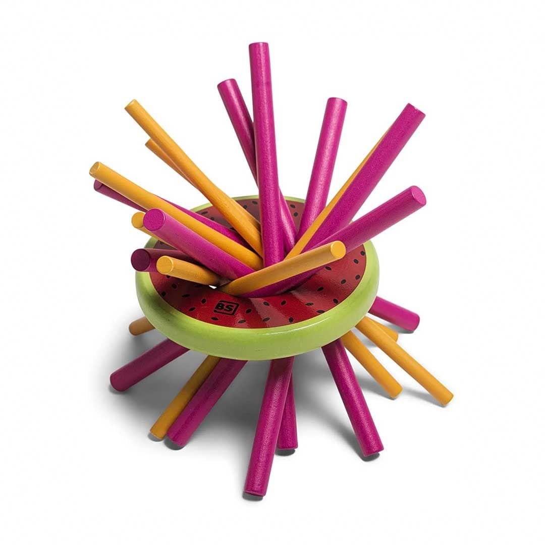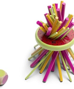 Το Mikado Καρπούζι έχει να κάνει με την ακρίβεια των κινήσεων! Πρέπει να ρίξεις το ζάρι και να αφαιρέσεις το ξυλάκι με το αντίστοιχο χρώμα.